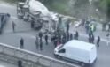 Üsküdar’da tırın üzerindeki ekskavatör tabelaya çarptı: 7 araç zarar gördü