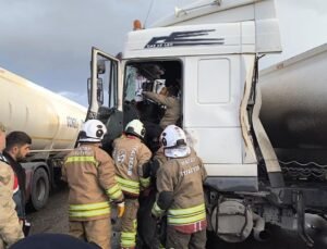Üsküdar’da tırın üzerindeki ekskavatör tabelaya çarptı: 7 araç zarar gördü