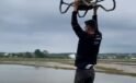 Çeltik tarlasında tehlikeli yolculuk: Drona asılıp uçtu