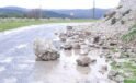 Yağış sonrası topraktan kaydı, kayalar yolu kapattı