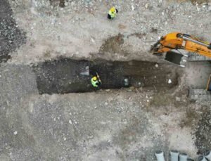 Üsküdar’da tırın üzerindeki ekskavatör tabelaya çarptı: 7 araç zarar gördü
