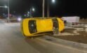 Kontrolden çıkan ticari taksi orta refüje devrildi