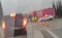 Kontrolden çıkan tır yolu kapattı