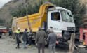 Hafriyat kamyonu refüje daldı, sürücü yaralandı