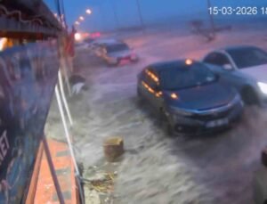 Siirt’te sağanakta göle dönen yollarda araçlar mahsur kaldı