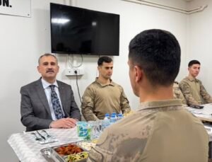 Vatan nöbetindeki kahramanlar sınır hattında iftar sofrasında