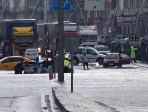 Üsküdar’da tırın üzerindeki ekskavatör tabelaya çarptı: 7 araç zarar gördü