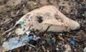 Dev dalgalar, ölü yunus balığının kalıntılarını sahile sürükledi
