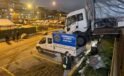 Park halindeki kamyon hareket edip başka aracın üzerine düştü: O anlar kamerada
