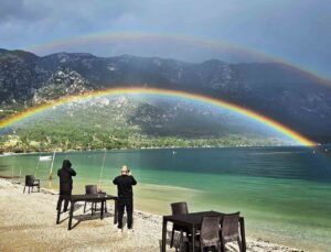 Muğla Akbük Koyu’nda oluşan Gökkuşağı mest etti