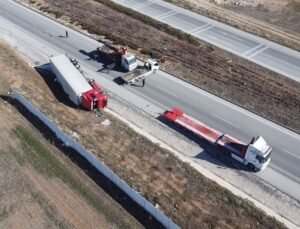 Üsküdar’da tırın üzerindeki ekskavatör tabelaya çarptı: 7 araç zarar gördü