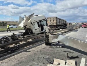Üsküdar’da tırın üzerindeki ekskavatör tabelaya çarptı: 7 araç zarar gördü