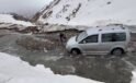 Menfez olmayan yolda sel: Araçlar mahsur kaldı