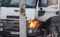 Beton kamyonu alev aldı, esnaf güçlükle söndürebildi