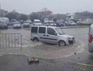 Üsküdar’da tırın üzerindeki ekskavatör tabelaya çarptı: 7 araç zarar gördü