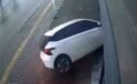 Otomobil iş yerinin vitrininden içeri girdi