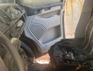 Üsküdar’da tırın üzerindeki ekskavatör tabelaya çarptı: 7 araç zarar gördü