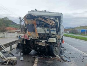 Üsküdar’da tırın üzerindeki ekskavatör tabelaya çarptı: 7 araç zarar gördü