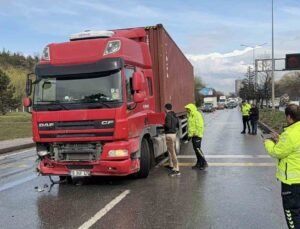 Üsküdar’da tırın üzerindeki ekskavatör tabelaya çarptı: 7 araç zarar gördü