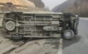 Kontrolden çıkan minibüs takla attı, sürücü yaralandı